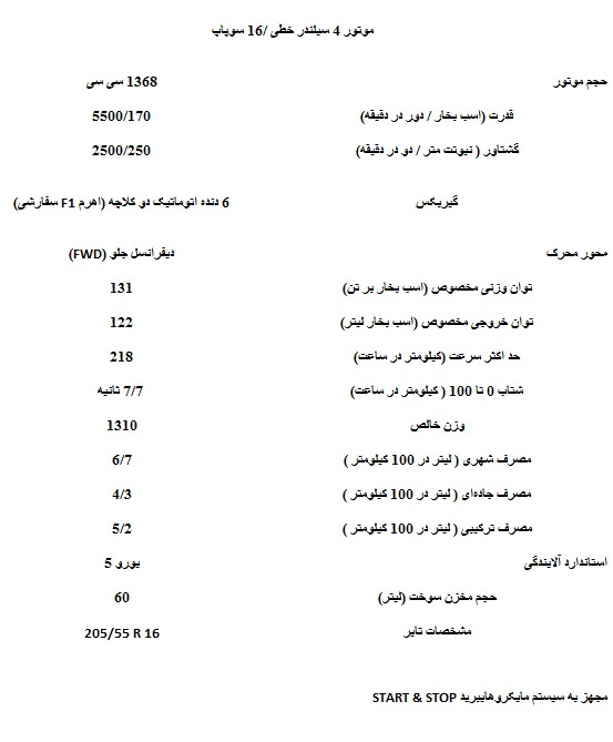 4 سیلندر 1400 سی سی – 6 دنده اتوماتیک دو کلاچه (اهرم F1 سفارشی) – 170 اسب بخار